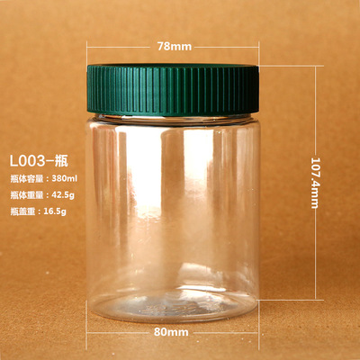 密封食品罐批发 380ml透明PET塑料瓶加厚中药饮片瓶