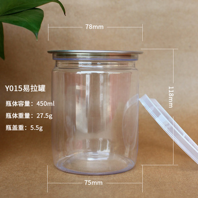 厂家批发450ml透明易拉罐食品瓶 PET密封食品零食花茶塑料包装罐