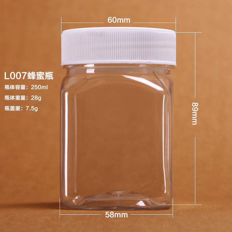 250g蜂蜜瓶批发 透明食品包装瓶干果脱水蔬菜密封塑料瓶厂家直销