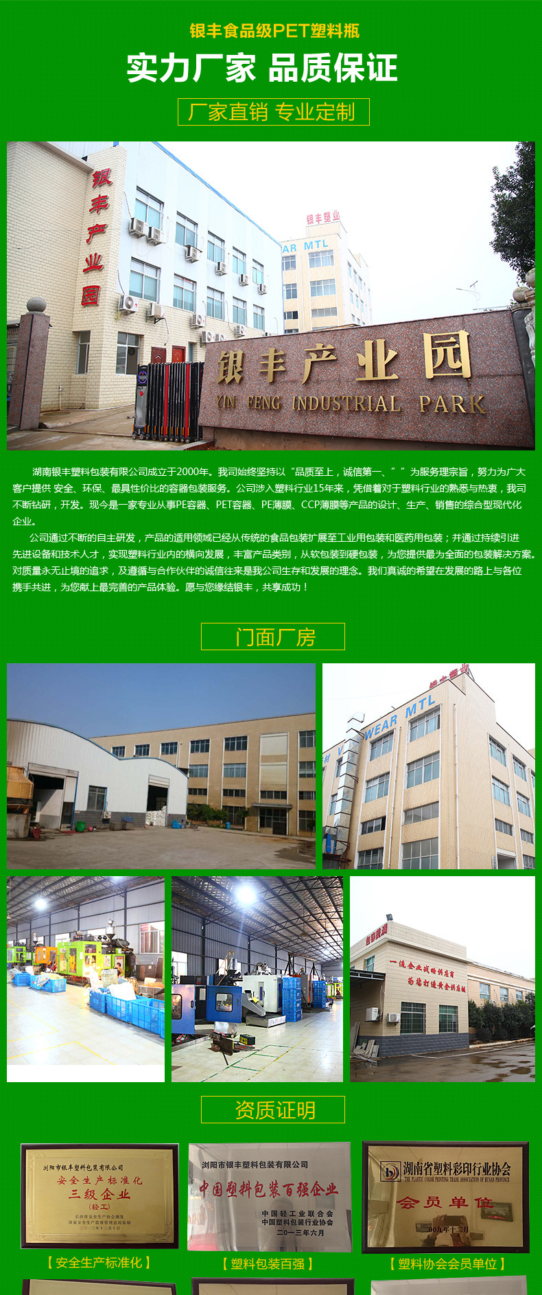 湖南银丰塑料包装有限公司成立于2000年。我司始终坚持以“品质至上,诚信第一、””为服务理宗旨,努力为广大客户提供 安全、环保、最具性价比的容器包装