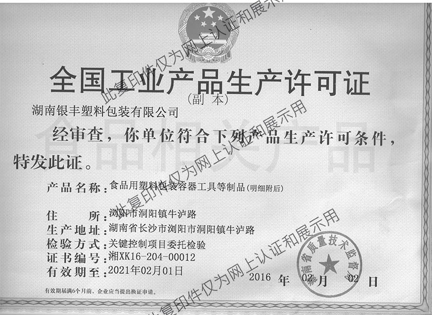 银丰生产许可证复印件