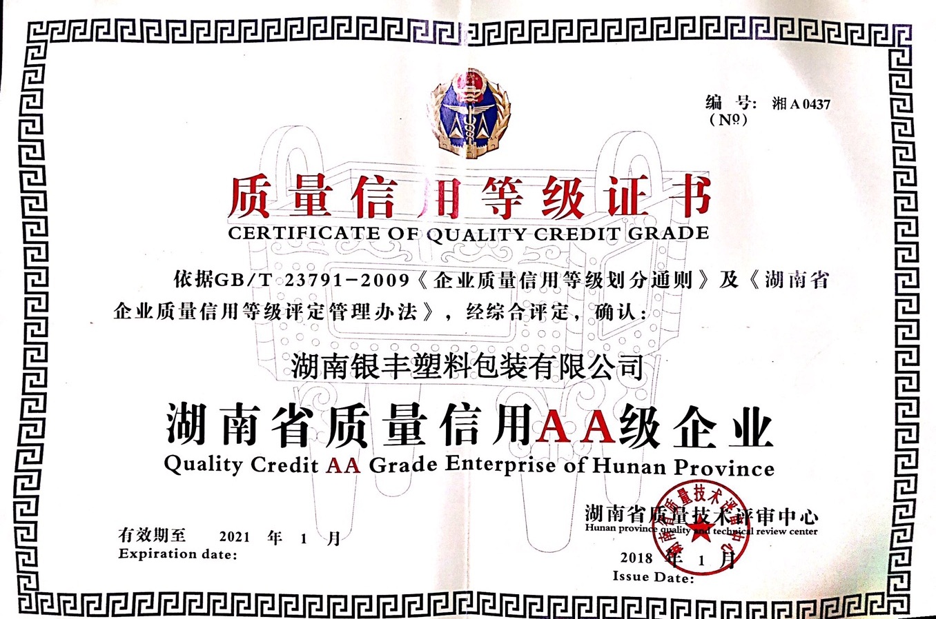 质量信用AA级企业